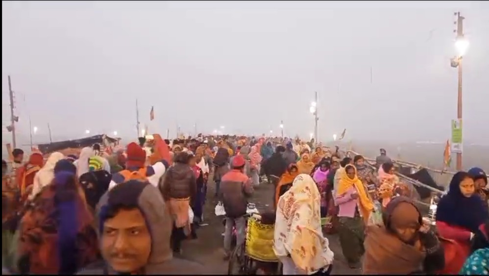 কনকনে শীতকে উপেক্ষা করে চলছে মকর সংক্রান্তির পূর্ণ স্ননে ভিড় বীরভূম কেন্দুলির অজয় নদিতে।