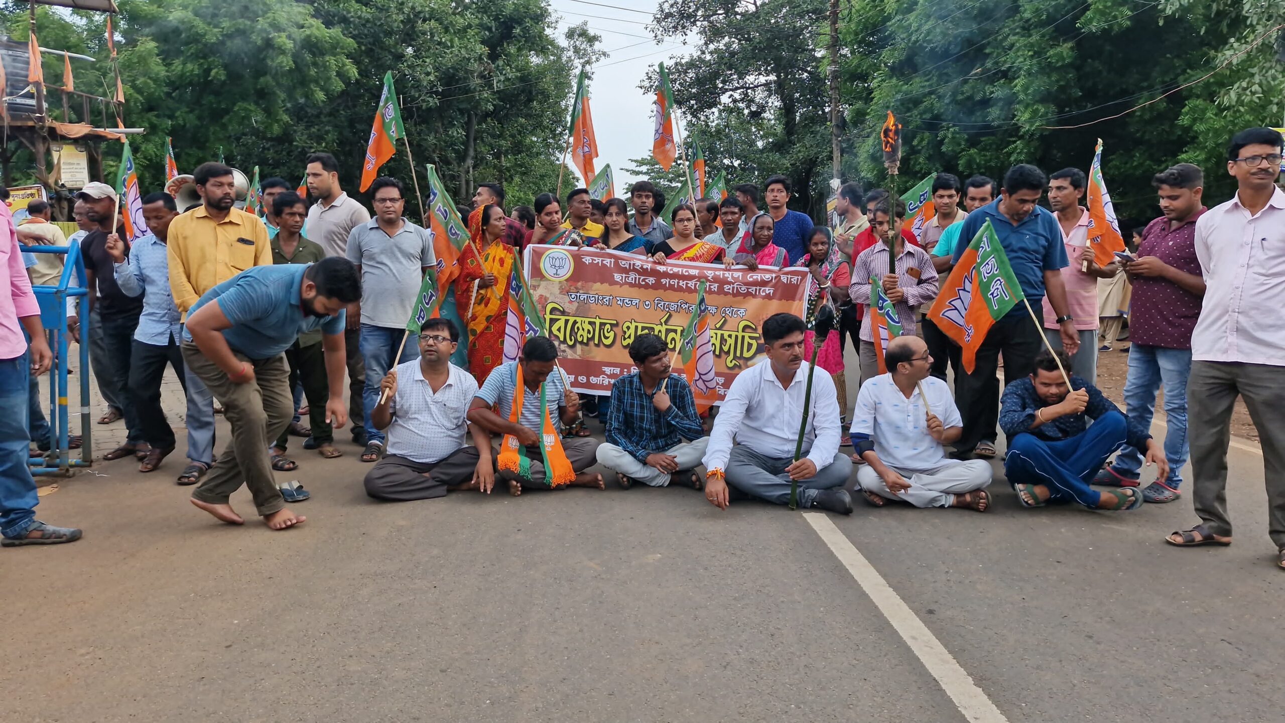 রাজ্য জুড়ে ধর্ষণ খুন চাকরি চুরি, বালি কাঠ পাথর চাল চুরি সহ বিভিন্ন দুর্নীতির প্রতিবাদে বিজেপির পথ অবরোধ কর্মসূচি বাঁকুড়ার সিমলাপালে।