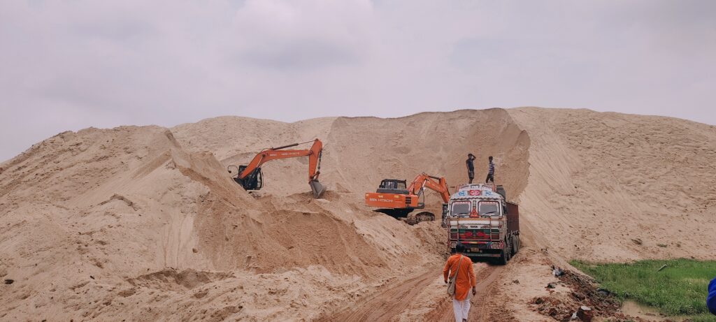নিজের হাতে ধরলে ওভারলোডিং বালি বজায় লরি, প্রশাসনের আধিকারিকদের ডেকে দিলেন ধমক।