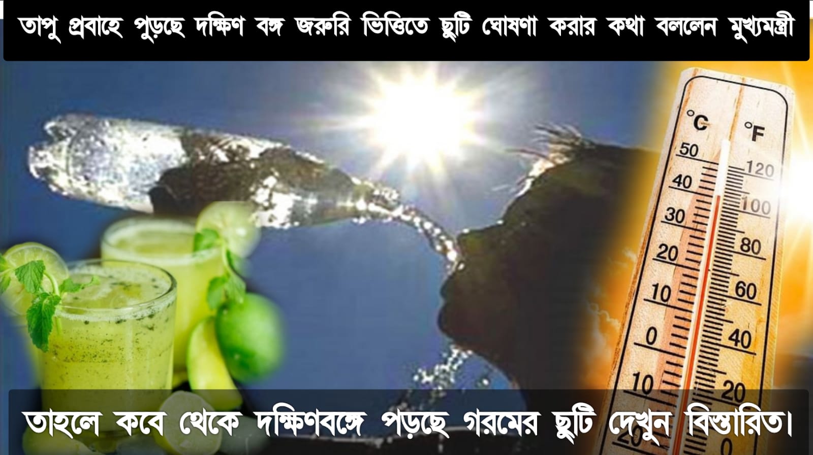 দক্ষিণবঙ্গ জুড়ে চলছে তাপপ্রবাহ,আগামী সপ্তাহে স্কুল কলেজ ও বিশ্ববিদ্যালয় ছুটির বিজ্ঞপ্তি জারি করার নির্দেশ মুখ্যমন্ত্রীর।