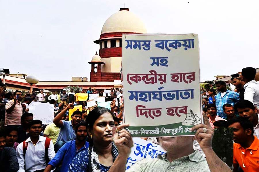 শীর্ষ আদালতের নির্দেশ মতো আর দু’দিনের মধ্যে রাজ্যকে সরকারি কর্মচারীদের ২০০৯ থেকে ২০১৯ পর্যন্ত ২৫ শতাংশ বকেয়া ডিএ দেওয়ার কথা। কিন্তু, এখনও পর্যন্ত নবান্ন বা অর্থ দফতর থেকে কোনও নির্দেশিকা জারি হয়নি। যদিও প্রশাসনের একটি সূত্র জানিয়েছিল এই নির্দেশ মডিফিকেশনের জন্য সুপ্রিম কোর্টে আবেদন করা হয়েছে। কিন্তু শীর্ষ আদালত ছুটির কারণে বন্ধ থাকায় সেই আবেদন এখনও তালিকায় ওঠেনি। বকেয়া ডিএ মেটানো নিয়ে অন্তর্বর্তীকালীন নির্দেশের পরিবর্তন চেয়ে সুপ্রিম কোর্টের দ্বারস্থ হওয়ার কথা শোনা যাচ্ছিল। রাজ্য সরকার এই আর্জি জানাবে বলে সূত্রের খবর ছিল। সূত্রের খবর, আদালত যে নির্দেশ দিয়েছে, তার কয়েকটি ক্ষেত্রে সুষ্পষ্ট ব্যাখ্যা চেয়েই আবেদন করতে চাইছিল রাজ্য। তবে একই সঙ্গে দেশের সর্বোচ্চ আদালতের নির্দিষ্ট করে দেওয়া সময়ের মধ্যেই বকেয়া ডিএ বা মহার্ঘভাতা দেওয়ার বিষয়েও তোড়জোড় শুরু করে নবান্ন।